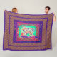 Just an amazing fleece blanket, that's all! Original White Rabbit illustration based on the adventures Alice had while down the rabbit hole. You know, in Wonderland! Incredibly colourful, in purples, pinks, oranges and cyan green. Mice, cakes and tea cups chase the edges of the central image of the ever hurried and harried White Rabbit. He flashes his watch at you as he runs on by. The rest of the blanket is covered in chequered squares and purple lines. A real trip down the rabbit hole for sure. Comfy fleece and artful design! Wonderful combination.