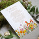 Colourful Wild Flowers We're Downsizing Our Wedding Announcement Card features pretty country flowers in orange, yellow, purple and pink on a white background with your We're Downsizing Our Wedding/Change of Plans information. Perfect for those that would like to livestream their wedding to family and friends as due to social distancing regulations guest numbers are limited. Personalize by editing the text in the text boxes. Designed for you by Evco Studio www.zazzle.com/store/evcostudio