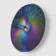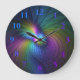Colourful With Blue Modern Abstract Fractal Art Large Clock