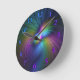 Colourful With Blue Modern Abstract Fractal Art Round Clock