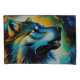 Colourful Wolf howling in shades blue, green, rust and golds