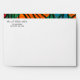 The back envelope flap is printed with a chic wild zebra stripe animal print pattern in red, blue, green, orange, red and black design that continues onto the top of the front side. FREE return address printed on the front. MATCHING items in our store.