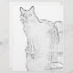 Cat with long hair, sitting on table in front of multiple spools of yarn. Using ink, paint, pencil, or - colour to your liking.