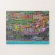 Colourful, Stylized painting of beautiful Manarola, Cinque Terre Popular Artist Lisa Lorenz. Now available on puzzle with matching gift box.