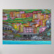 A Print of beautiful, colourful, stylized painting of Manarola Cinque Terre by Lisa Lorenz, Select the size and paper you desire. Can be printed for a big colourful print.
