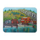 Colourful, stylized painting scene of Quidi Vidi's little colourful harbour in Newfoundland, Canada on a magnet by Lisa Lorenz