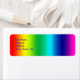This label displays a colourful abstract design, displaying the colours of the rainbow, one of the most beautiful sights in nature. A rainbow is created when light from the sun’s rays illuminates droplets of water in the Earth’s atmosphere. Raindrops act like a prism taking in white light and then refracting that light into separate bands of colour. The result is a multi-coloured circular arc or bow with a progression of colours from red to violet. The seven main colours of the rainbow are red, orange, yellow, green, blue, indigo and violet. Some other colours that may also be seen are pink, cyan, and purple. The resulting rainbow also includes colours of the spectrum that our eyes are unable to see.