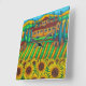 Beautiful, stylish Wall Clock with a beautiful painting scene of Tuscany and all it's Sunflowers by Popular Artist Lisa Lorenz