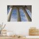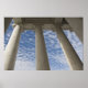 The marble columns of the Jefferson Memorial against a beautiful cloud filled blue sky.