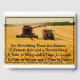 A red combine and tractor harvest wheat. The back features quotes from Ecclesiastes 3:4. For everything there is a season. A time to sow and a time to reap. A time to weep and a time to laugh. A time to mourn and a time to dance.