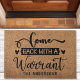 Welcome guests with a playful warning and a touch of humour with this "Come Back With A Warrant" doormat. The faux burlap background adds a rustic charm, while the bold message creates a fun and inviting atmosphere. This durable doormat is perfect for adding a touch of personality and a dash of attitude to your porch or entryway.