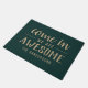 Add a welcoming touch to your front door with this cute and funny personalized doormat in classic hunter green and tan. "Come in, we are awesome" appears in the centre, with your family name beneath.