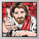 Jesus Christ said Come To me. Pop art style illustration of our smiling, happy Saviour beckoning us to come to him. The scars on his hands from his crucifixion clearly visible. On a background of interlocking hearts. For an original painted canvas of my design visit my website www.jamieleeart.com