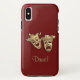 Greek masks of comedy and tragedy adorn this maroon case. Change or delete text to personalize