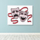 Vector illustration of comedy and tragedy theatre masks with a red ribbon.