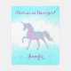 So comfy and plush, a beautiful blanket for girls of all ages!  Features a sparkly faux glitter unicorn, done in lavenders, pinks, and aqua blues.  Make this blanket uniquely yours - Just click “personalize” to easily add your own name.  Great for school, dorm, or home.  Makes a wonderful gift!