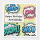 These custom party napkins feature a colourful comic book theme over a yellow background. Popular comic strip action words and phrases such as, "Oh, Snap!" "OMG!" "BOOM!" and "WOW!" are placed around the edges in speech bubbles. A sample "Happy Birthday" message is printed inside a text area followed by a sample name. You can personalize the napkins to include your own custom name or other text. It's perfect for a bridal shower, birthday party, or other exciting celebration.