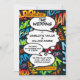 A fun, cool and trendy retro comic book pop art-inspired wedding invitation that puts the wham, zap, pow into any superhero couple's celebration event. Personalize with your special wedding event details in modern text. Designed by Thisisnotme©