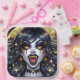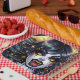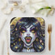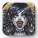 Halloween party paper plates. Black and gold vampire with golden fangs and eyes comic book pop art ai art. Cool for Halloween or anyone who loves vampires..