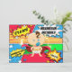 Pow! It's A Boy! A cute superhero baby with blue pacifier and red cape proudly announces the birth of your little hero. Customize it with your baby's name, time of birth, and weight.