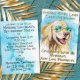 Cute and modern invitation for a retirement party, with a funny golden retriever on a tropical beach. Original design created from one of our hand painted watercolors.