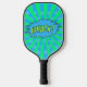 Comic Whack Logo Pickleball Paddle in blue and green.
