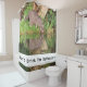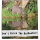 Comical shower curtain with a cat drinking. Personalize the text - don't drink the bathwater message to suit your decorating style.
