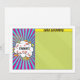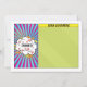 Unique and fun pop art comics comic book Bar Mitzvah flat thank you card. Your son's personalized thank you message can be written in the green part of the card. This comic book Bar Mitzvah flat think you card is modelled after a comic strip like you'd see in the comics section of a newspaper or what you'd see in superhero comic books. It's done up in the pop art comic book style with bright colours, sunbursts and clouds. The colours on this comic book themed Bar Mitzvah thank you card are bright blue, red, yellow, green, orange pink, black, and white.