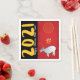 Water buffalo illustration in comics style placed on traditional red Chinese pattern as background + golden Year of the Ox in centre with vertical black band for modern yellow lettering : Happy Chinese New Year and large 2021 to customize if you want. You can easily change these texts (font, colour, size and position) by clicking the customize button. Design on paper napkin. Matching paper plate, greeting card, postcard, invitation, craft supplies, party supplies and more... Perfect for a fun Chinese New Year of the Ox 2021 or Birthday (people born in Ox year).