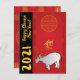 Water buffalo illustration in comics style placed on traditional red Chinese pattern as background + golden Year of the Ox in centre with vertical black band for modern yellow lettering : Happy Chinese New Year and large 2021 to customize if you want. Design on vertical postcard. You can easily change these texts (font, colour, size and position) by clicking the customize button. Matching greeting card, holiday postcard, invitation, craft supplies, party supplies and more... Perfect for a fun Chinese New Year of the Ox 2021 or Birthday (people born in Ox year).