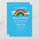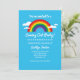A coming out part invitation with a rainbow against a blue sky background. <a href='http://www.freepik.com/free-vector/blue-background-of-pride-day-with-a-rainbow_896383.htm'>Designed by Freepik</a>. <br/><br/>The card is easy to customize with your wording, font, font colour, paper shape options and choice of six paper types.<br/><br/>Not exactly what you're looking for? All our products can be custom designed to meet your needs at no extra charge.<br/><br/>Simply contact us at askpixieprints@aol.com.<br/><br/>Coordinating products available: Just ask us!