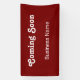Coming Soon is in a decorative font above additional text for your business. This deep red banner has white text that can be edited or deleted.