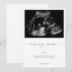 Share the great news of your precious miracle with this coming soon minimalist pregnancy announcement card. The design features a classic calligraphy script, which reads "coming soon", a clean white space to add the baby ultrasound photo, name and arrival date.