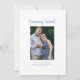 Photo pregnancy announcement card with "coming soon!" lettered in blue brush script. The announcement wording is fully editable and currently reads "we are expecing a baby boy. Baby [last name] is due [due date] love [your names]". The back of the card is plain, in matching blue. Simple, fresh and modern design to let everyone know you're expecting.