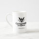 This fine porcelain mug features a subtly fluted rim and an elegantly curved handle.