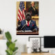 All rise for POTUS Paws! This French Bulldog means business in a tailored presidential suit with red tie and American flag pin. Seated confidently behind the Oval Office desk, one paw raised in a commanding gesture, he’s mid-speech at a national press briefing. Behind him, the U.S. flag and a reimagined bulldog George Washington complete the scene. It's the perfect print for dog fans, humour collectors, and lovers of democratic drool.