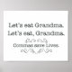 Remember you should be calling grandma to the table to eat THE FOOD! Be kind and be sure to use your commas wisely please.