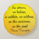 Une forme féminine remplie d'étoiles, de lunes et de soleils avec la citation "Comme ci-dessus, ainsi ci-dessous, comme à l'intérieur, donc sans, comme l'univers, ainsi l'âme" par Hermes Trismegistus