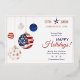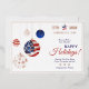 Celebrate the season and honour America’s 250th anniversary with this commemorative Happy Holidays keepsake card. Featuring patriotic ornaments, shimmering gold foil accents, and a 1776–2026 America 250 banner, it blends festive Christmas and New Year cheer with a historic milestone.
