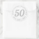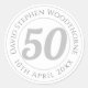 Commemorative birthday celebration sticker label with person's name, and the date of their birthday. A paper sticker for someone who is 50.