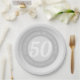 Commemorative 50th birthday celebration paper party plate with person's name, and the date of their birthday. A paper party plate for someone who is 50.