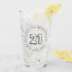 Commemorative birthday celebration glass with person's name, and the date of their birthday. A glass for someone who is 21. Outline number style.