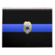Ce beau calendrier d'art original de la Ligne Bleue Mince vous rappellera toutes les dates importantes de l'année, y compris la date la plus importante de toutes, Journée commémorative des agents de la paix, Notre calendrier est magnifique à la maison ou au bureau. Laissez-nous un SIGNE sur notre boutique de cadeaux et de graphismes Zazzle et quand il est temps pour vous de commander votre calendrier à nouveau l'année prochaine, contactez-nous par l'intermédiaire de ce magasin et nous customiserons votre nouveau calendrier pour vous de quelque manière que vous aimiez absolument sans frais supplémentaires.