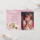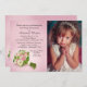 A lovely pink and white bouquet against a pink radiant background creates a beautiful First Holy Communion invitation for a little girl.