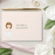 This beautiful and sweet First Holy Communion design of a brunette little girl praying peacefully on her special day is on a pale peach and sage background. Accented with a wildflower leaf frame. Cherish the great memories of your child’s first holy communion with this beautiful design. Check out the matching First Holy Communion accessories, stationery, and communion gifts.