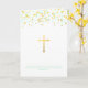 This festive and modern design is perfect for your child’s First Holy Communion. The background consists of a white background accented with mint and gold round confetti and an ornate gold cross. This collection is simply beautiful. Check out the matching accessories, gifts, party favours and stationery.