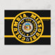 Postcard black with black, gold and white concentric-circles design above a purple and gold rectangle with "COLUMBIA, MISSOURI CENTER OF THE UNIIVERSE" with Y-NOT-ME. This design is a shout-out to Columbia, Missouri a city on the move.