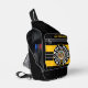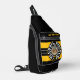 Sling Bag black with black, white, and gold concentric-circles design and "COLUMBIA, MISSOURI CENTER OF THE UNIVERSE" and the Great Seal of Missouri in the centre and "GO TIGERS! Columbia, MO" in script at the top. This design is a shout-out to Columbia, Missouri, a great university town.