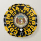 Throw Pillow, round black with gold hounds-tooth design on the front and black, white, and gold concentric-circles design and "COLUMBIA, MISSOURI CENTER OF THE UNIVERSE" and the Great Seal of Missouri in the centre and "Columbia, MO" at the top in script with Y-NOT-ME and Y-NOT-ME logo on the back over black and gold houndstooth design. This design is a shout-out a centre of higher education Columbia, Missouri.