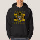 Noir sweat - shirt à capuche avec design en noir, or et blanc concentrique, au-dessus d'un rectangle noir, blanc et or avec "COLUMBIA, MISSOURI CENTRE DE L'UNIVERSE" avec le Grand Sceau du Missouri au centre et avec des logos Y-NOT-ME en arrière - plan. Cette conception est un cri à Columbia, Missouri, une ville en mouvement.